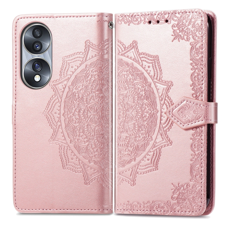 Funda para Honor 70 Mandala Flower Estampado Horizontal Flip Telephone (Oro Rosa)