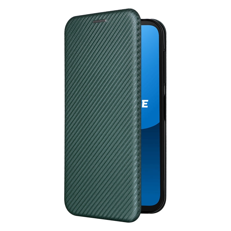 Funda de Cuero para Fairphone 5 con Tapa Textura Fibra de Carbono (Verde)