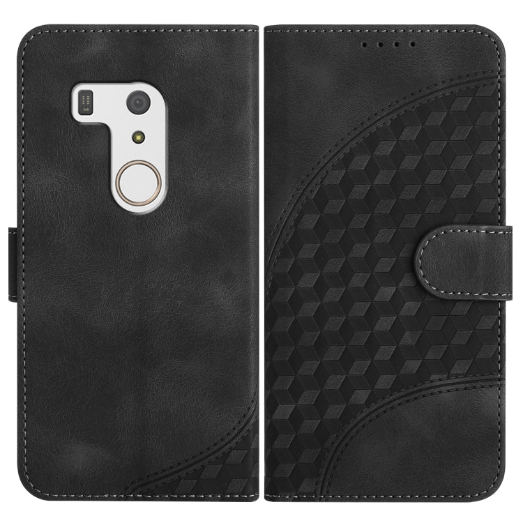 Funda de Cuero para Fujitsu Arrows F-01L F-42A Yx0060 con Relieve y Cabeza de Elefante con Cordón (Negro)