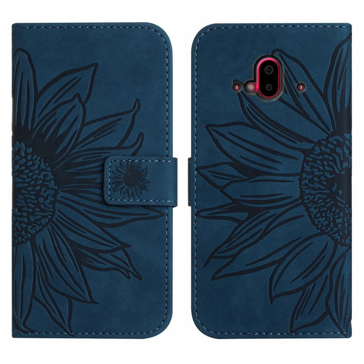 Funda Flip de Cuero para Fujitsu Arrows F-52B con Cordón y Diseño Sun Flower (Azul Tinta)
