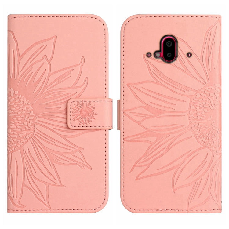 Funda Flip de Cuero para Fujitsu Arrows F-52B con Cordón y Diseño Sun Flower (Rosa)