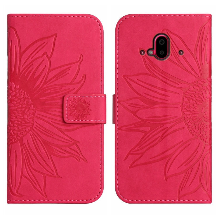 Funda Flip de Cuero Fujitsu Arrows F-52B Skin Feel con Cordón y Diseño Sun Flower (Rose Red)