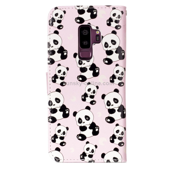 Estuche de Cuero para Galaxy S9 + con Tapa Horizontal, Patrón Panda en Relieve, Soporte, Ranuras para Tarjetas y Billetera