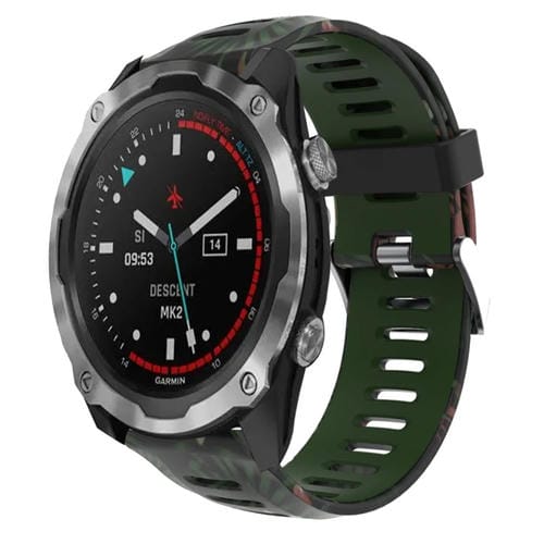 Correa de Reloj para Garmin Descent Mk 2I 26mm Silicona Camuflaje (Verde Militar + Bambú)
