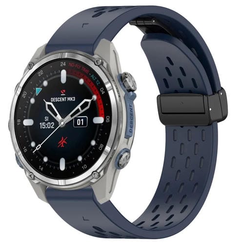 Correa de Reloj Silicona Garmin Descent Mk3 con Hebilla Plegable Magnética y Orificios 43mm 20mm (Medianoche)