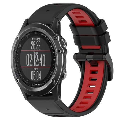 Correa para Garmin Fenix 3 Sapphire 26mm Silicona Deportiva Bicolor (Negro + Rojo)