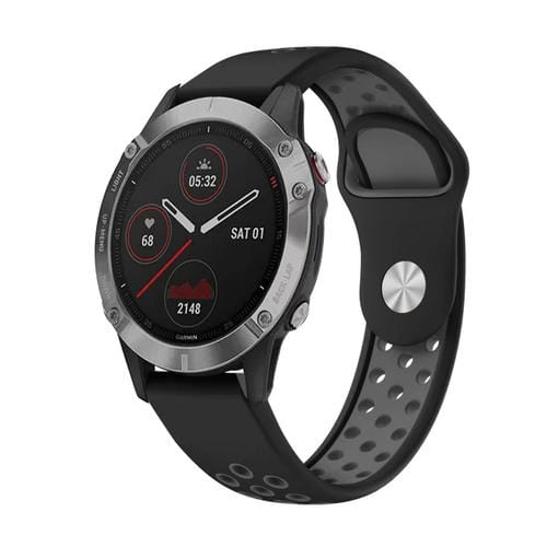 Banda de Reloj de Silicona para Garmin Fenix 6 GPS 22mm Sports (Negro + Gris)