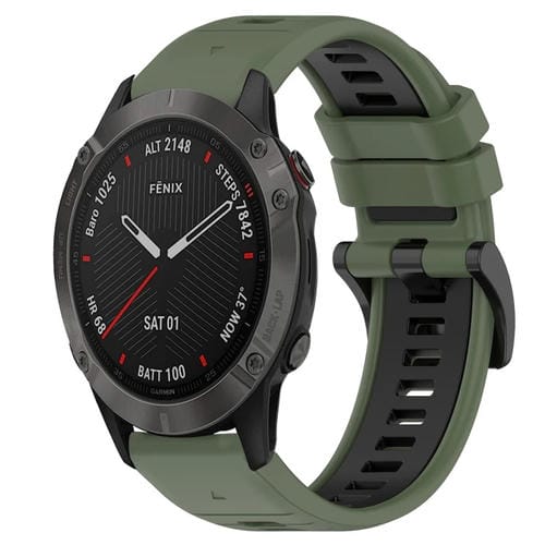 Correa para Garmin Fenix 6 Sapphire GPS 22mm Silicona Dos Colores (Verde Oliva + Negro)