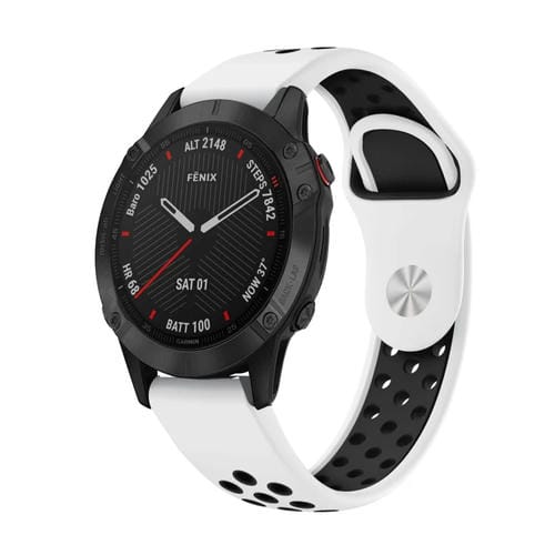 Banda de Reloj de silicona para Garmin Fenix 6 Sapphire GPS 22mm Sports (Blanco + Negro)