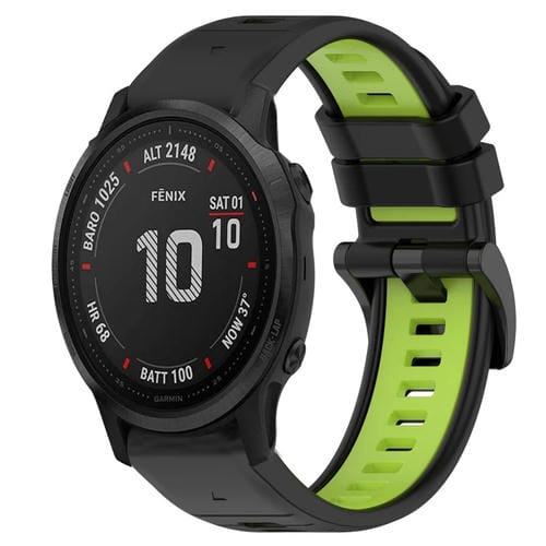 Correa deportiva silicona 20mm para Garmin Fenix 6S Pro (Negro + Verde Lima)