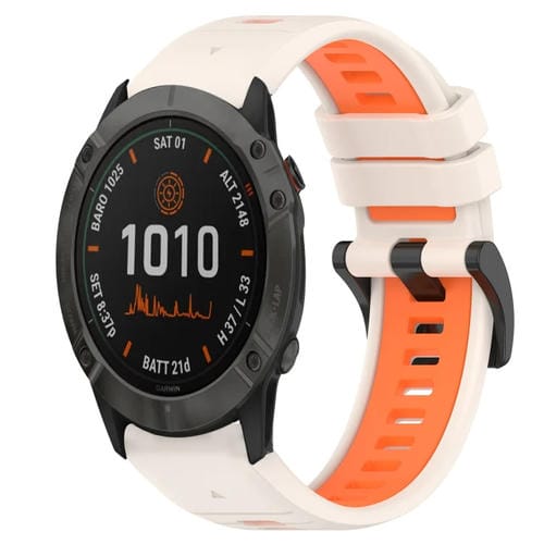 Correa Deportiva Garmin Fenix 6X Pro 26mm Silicona Bicolor (Starlight + Orange)