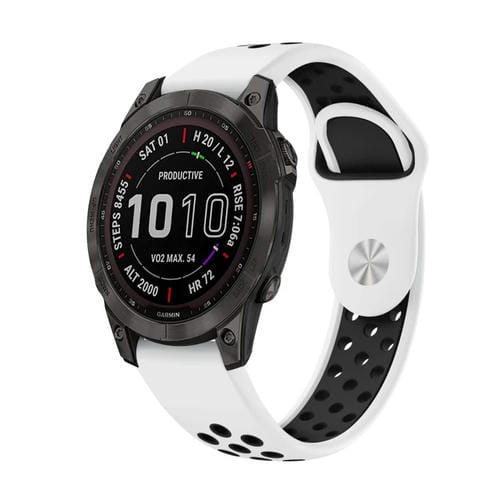 Correa de Reloj Silicona para Garmin Fenix 7 Sapphire Solar 22mm Deportiva (Blanco + Negro)