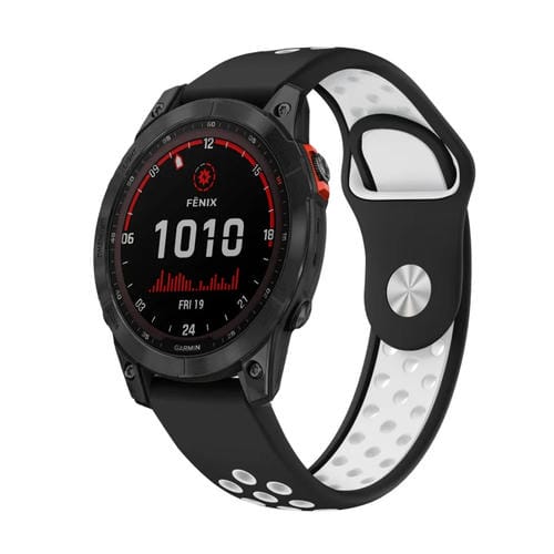 Banda de Reloj Garmin Fenix 7 Solar 22mm Sports silicona transpirable (Negro + Blanco)