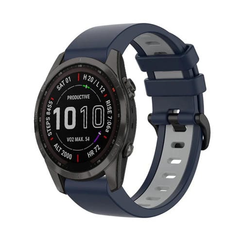 Correa deportiva silicona 22mm para Garmin Fenix 7S Sapphire Solar (Azul Oscuro+Gris)