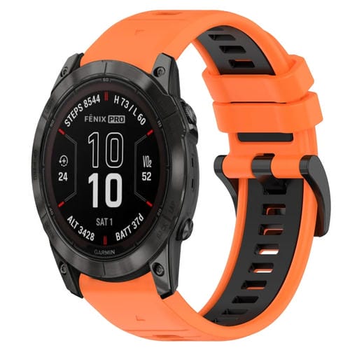 Correa de silicona para Garmin Fenix 7X Pro 51mm 26mm Sports dos colores (Naranja + Negro)