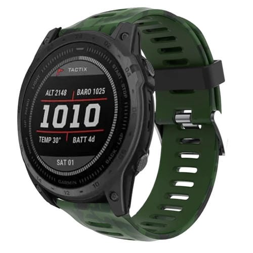 Correa de Reloj para Garmin Fenix 7X Solar 26mm Silicona Estampado Camuflaje (Verde Militar)