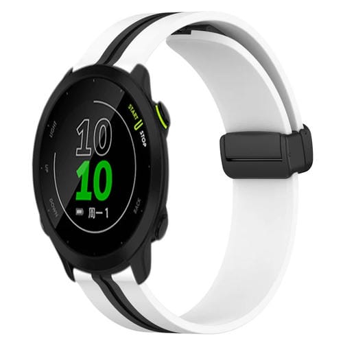Correa de Reloj para Garmin Forerunner 158 20mm Silicona con Cierre Magnético Plegable (Blanco + Negro)
