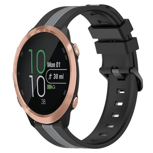 Banda de Reloj Garmin Forerunner 645 Music 20mm Silicona Dos Colores Vertical (Negro + Gris)