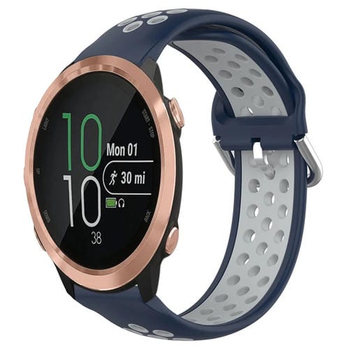 Banda de Reloj de Silicona para Garmin Forerunner 645 Music 20mm Deportiva Transpirable (Azul Medianoche + Gris)