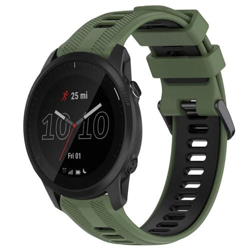 Banda de Reloj de Silicona para Garmin Forerunner 945 Sports Dos Colores (Verde Militar + Negro)