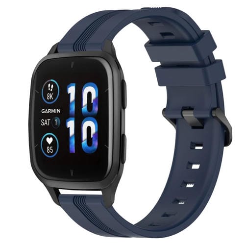 Banda de Reloj de Silicona para Garmin Forerunner Sq2 Music 20mm Cóncava a Rayas (Azul Marino)