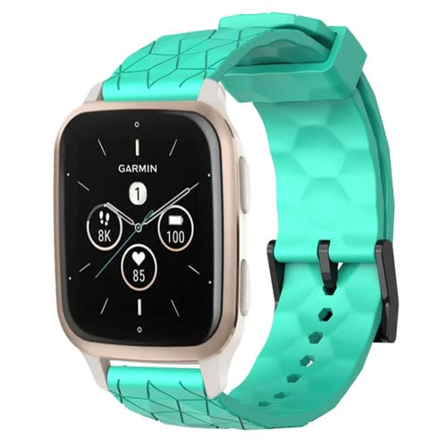 Banda de Reloj Silicona para Garmin Forerunner Sq2 Music 20mm Patrón de Fútbol (Verdeazulado)