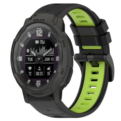 Correa silicona deportiva 22mm para Garmin Instinct Crossover Solar (Negro + Verde Lima)