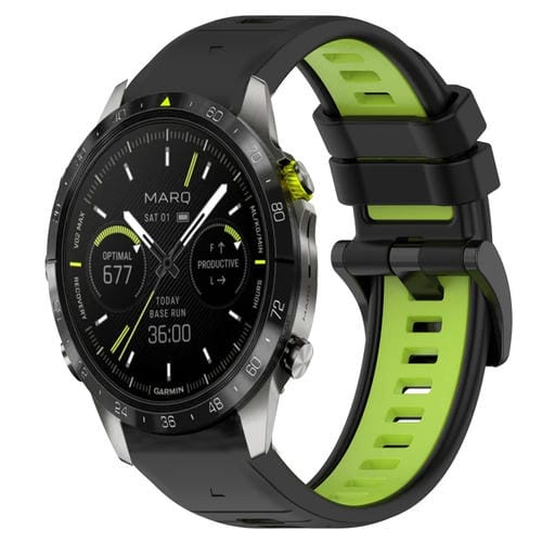 Para Garmin Marq Athlete Gen 2 22mm Sports Two-Color Silicone Watch Band (Negro + Verde Lima)