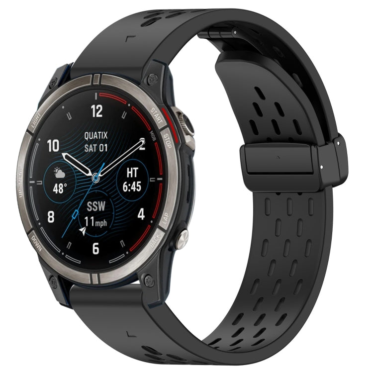 Correa de Reloj Garmin Quatix 7 Pro Silicona Hebilla Plegable Magnética 22mm (Negro)