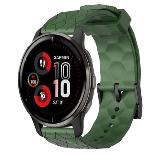 Banda de Reloj Garmin Venu 2 Plus 20mm Silicona Patrón de Fútbol (Verde Militar)