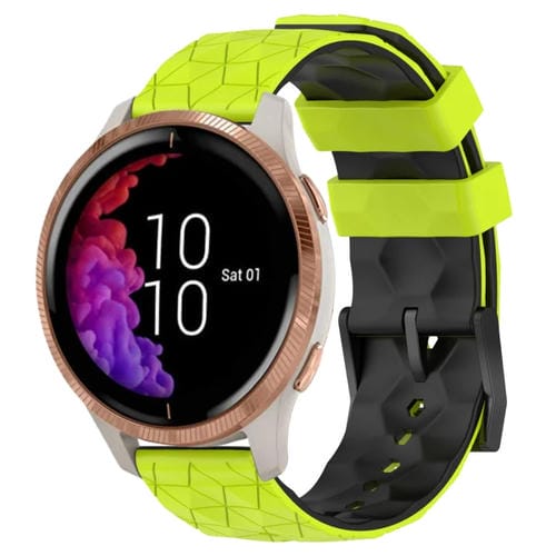 Banda de Reloj Garmin Venu 20mm Patrón de Fútbol silicona dos colores (Verde Lima + Negro)