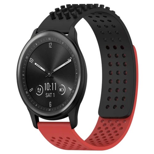 Correa de Silicona para Garmin Vivomove Sport con Puntos 3D Transpirables y Orificios 20mm (Negro + Rojo)