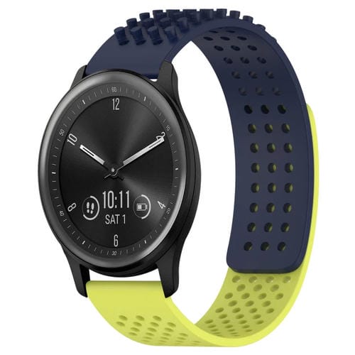 Correa de Silicona para Garminmove Trend 20mm Puntos 3D Transpirables (Azul Medianoche + Verde Lima)