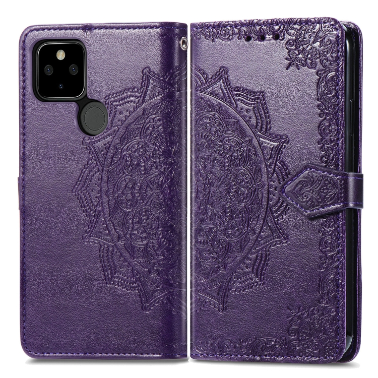 Para Google Pixel 5A Mandala Flower Flow horizontal Flip Funda de cuero con soporte / ranura para tarjeta / billetera / cordón (púrpura)