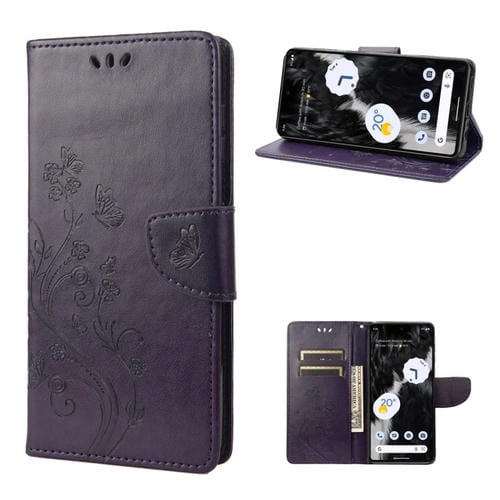 Funda de Cuero con Tapa para Google Pixel 7A Patrón Flor de Mariposa (Púrpura Oscuro)