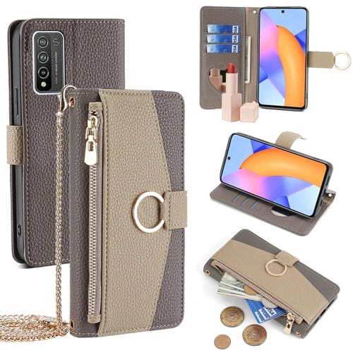 Funda Cruzada de Cuero para Honor 10X Lite con Textura Litchi (Gris)