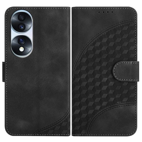 Funda de Cuero para Honor 70 Pro Yx0060 con Relieve y Cabeza de Elefante con Cordón (Negro)