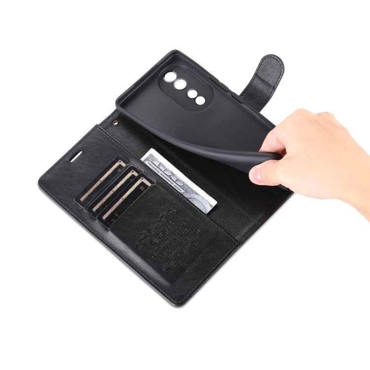 Funda de Cuero Flip para Honor 80 Pro Azns Textura de Piel de Oveja (Negro)