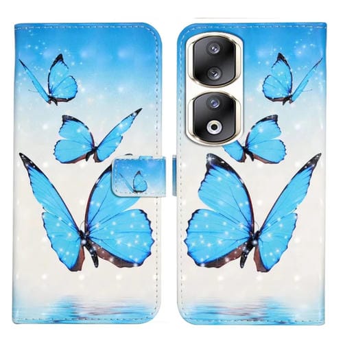 Funda de Cuero para Honor 90 Pro con Dibujo 3D en Relieve al Óleo (3 Mariposas)