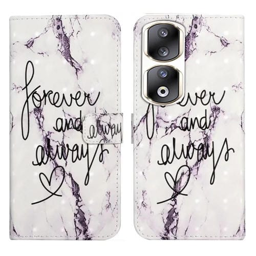 Funda de Cuero para Honor 90 Pro con Dibujo 3D en Relieve al Óleo (Palabras de Mármol)
