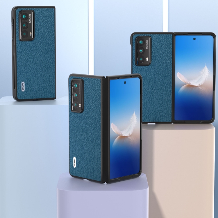 Funda para Honor Magic Vs2 Abeel con Textura Litchi de Cuero Genuino (Azul)