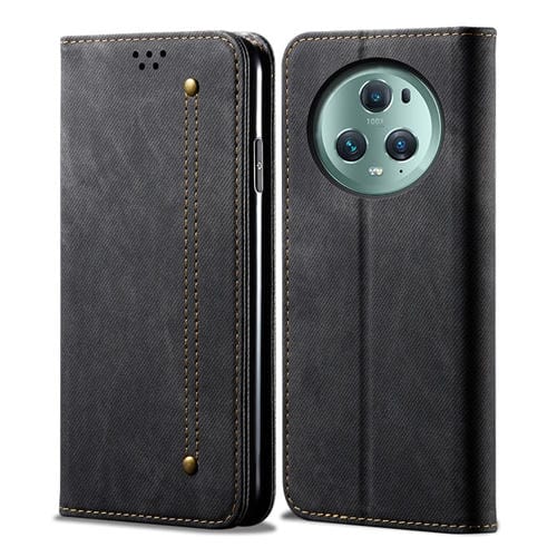 Funda de Cuero para Honor Magic5 Pro con Textura Vaquera para Teléfono (Negro)