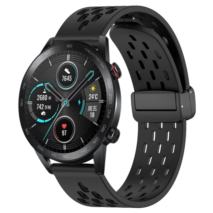 Correa de Silicona para Honor Magicwatch2 42mm 20mm con Cierre Magnético Plegable (Negro)