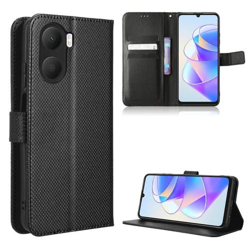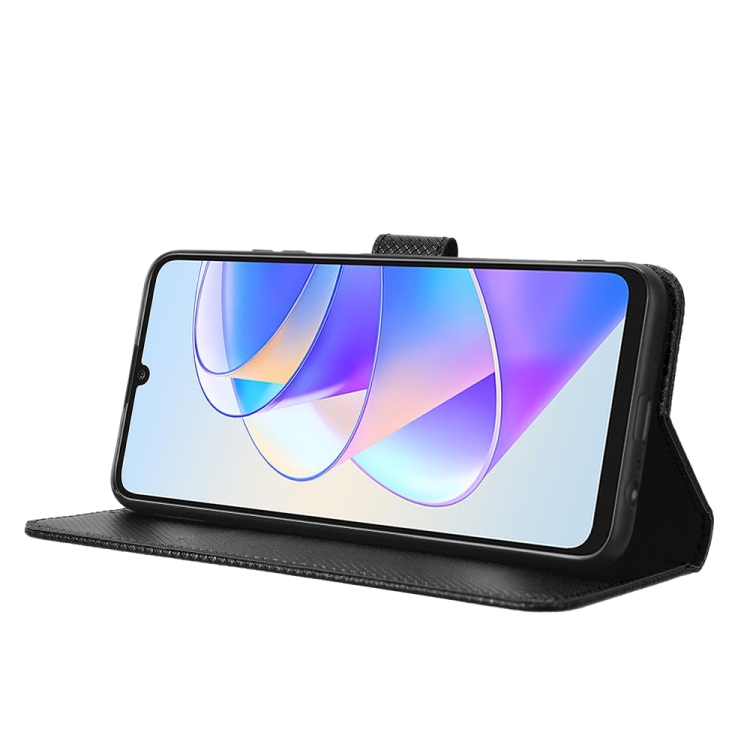 Funda de Cuero con Textura de Diamante para Honor Play 40 Plus (Negro)