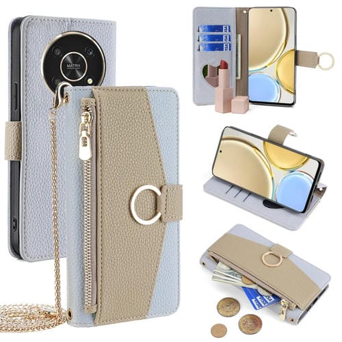 Funda Cruzada de Cuero para Honor X30 con Textura Litchi (Azul)