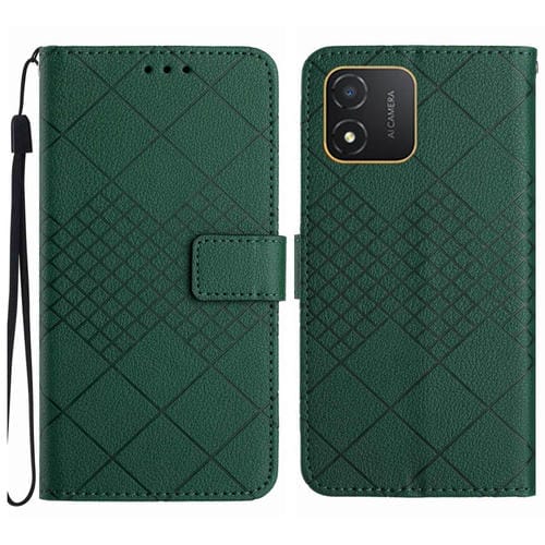 Funda para Honor X5 4G de Cuero con Textura de Rejilla Rómbica (Verde)