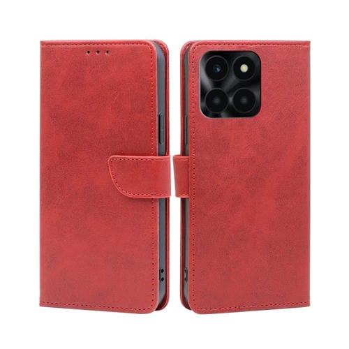 Funda para Honor X6A 4G de Cuero con Tapa, Hebilla y Textura de Becerro (Rojo)