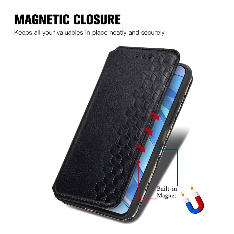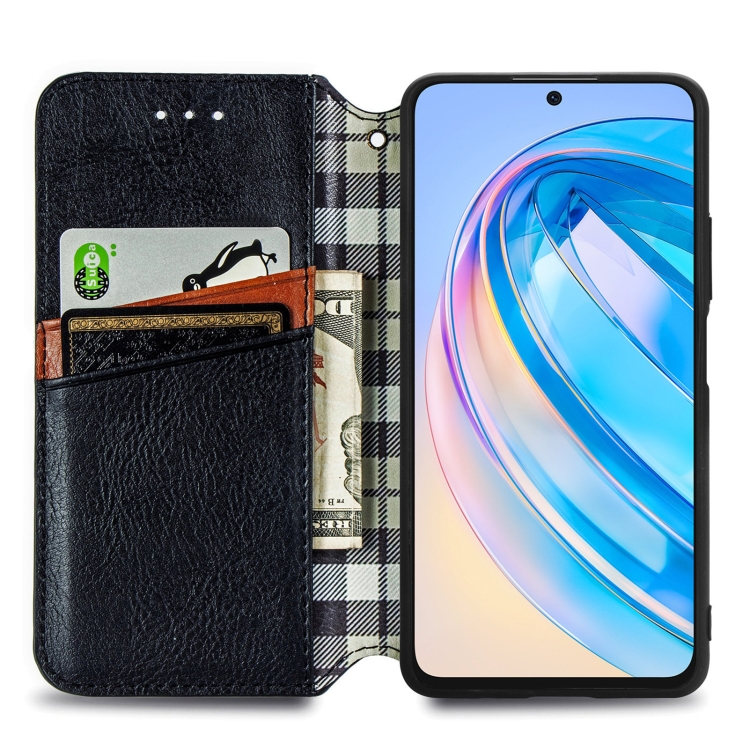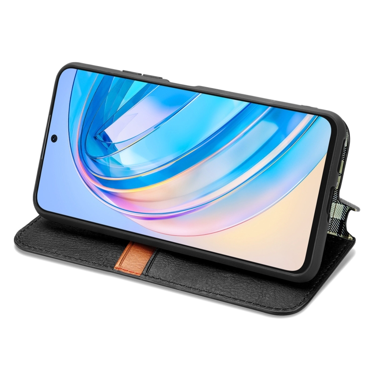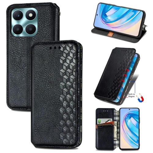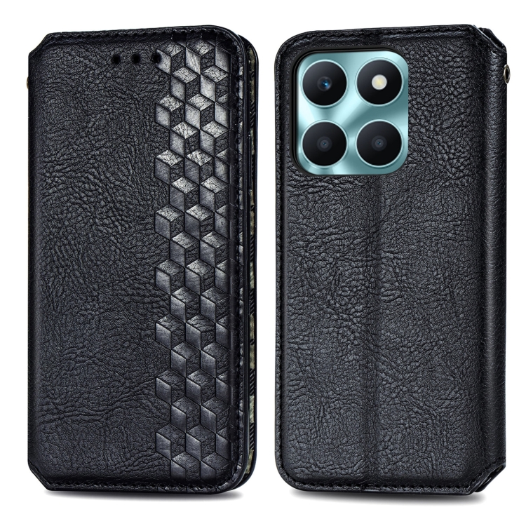 Funda para Honor X6A Cubic Grid de Cuero Magnético Prensado (Negro)