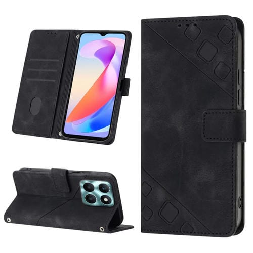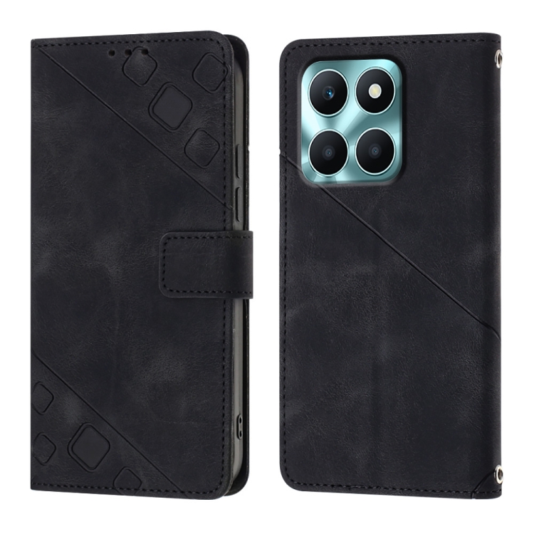 Funda de Cuero con Relieve para Honor X6A Teléfono (Negro)