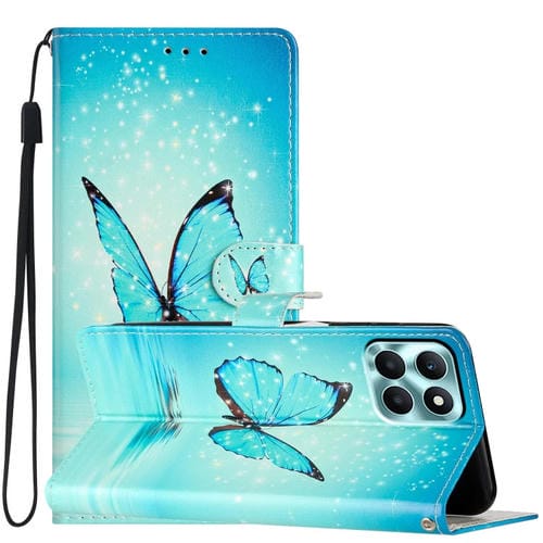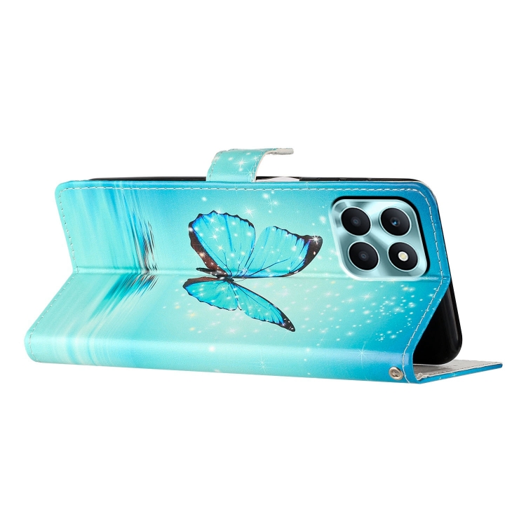 Funda de Cuero para Honor X6A con Dibujo Coloreado Mariposa Azul